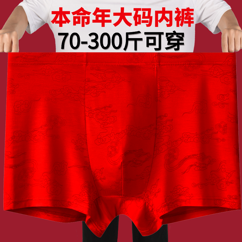 加肥加大码男士内裤平角莫代尔本命年红色福字肥佬胖子裤衩300斤
