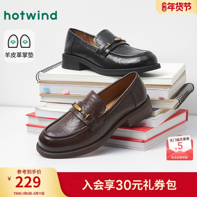 热风黑色小皮鞋女款2026年春季新款英伦风百搭乐福鞋减龄通勤女鞋