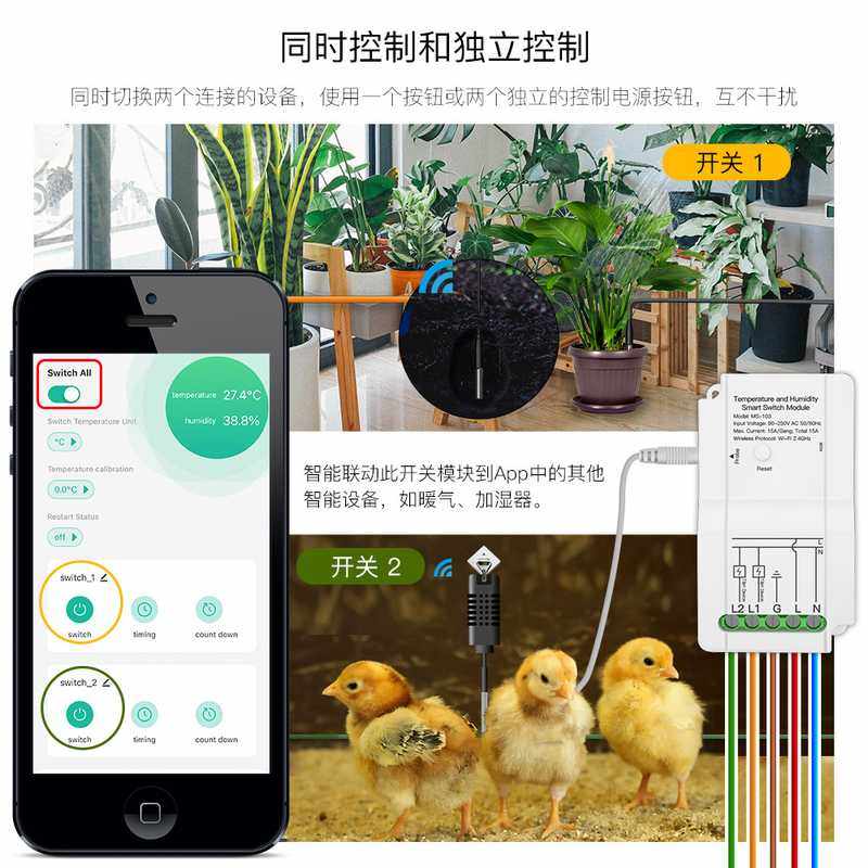 涂鸦智能WIFI温湿度智能开关控制器园林灌溉继电器模组继电器养殖