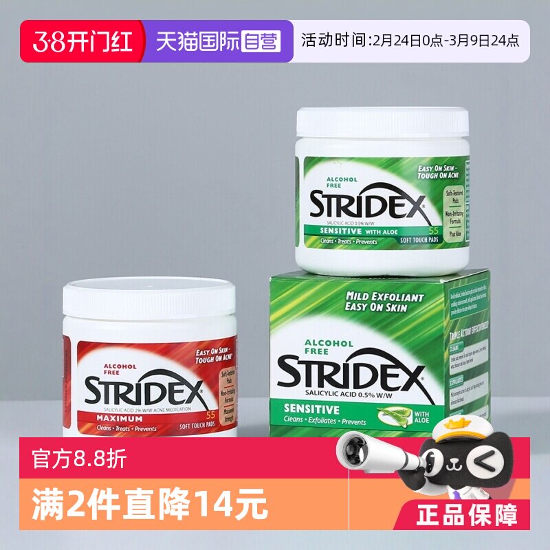 stridex水杨酸棉片精华祛痘痘去闭口粉刺痘印男女官方旗舰店正品