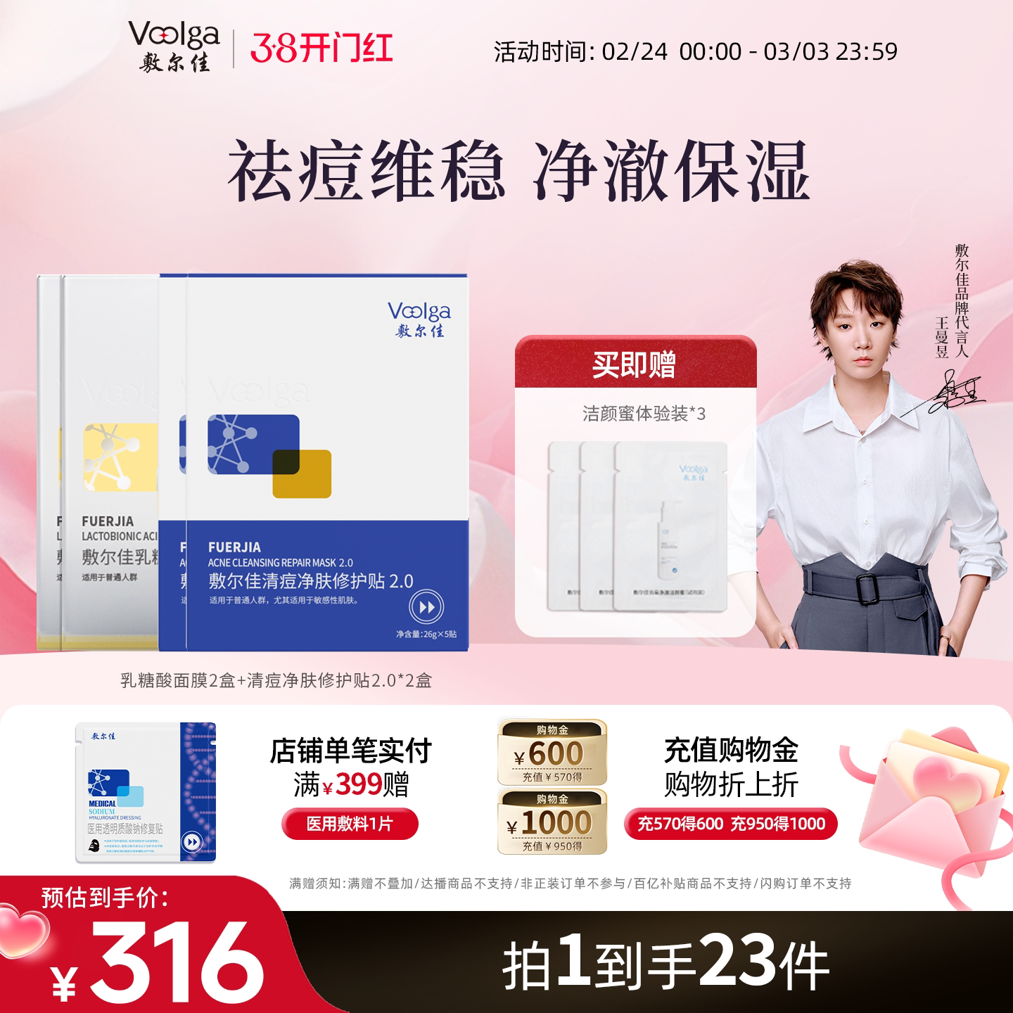 敷尔佳乳糖酸控油敛肤面膜贴片清痘净肤修护贴祛痘痘肌收毛孔官方