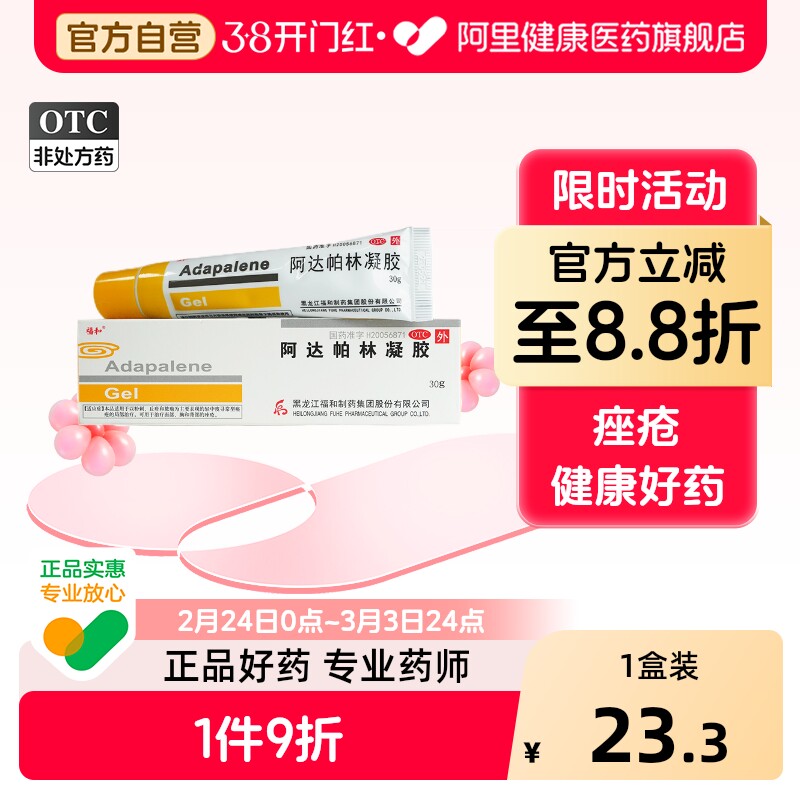 福和阿达帕林凝胶医用药膏官方旗舰店正品痤疮祛痘痘国药准字闭口