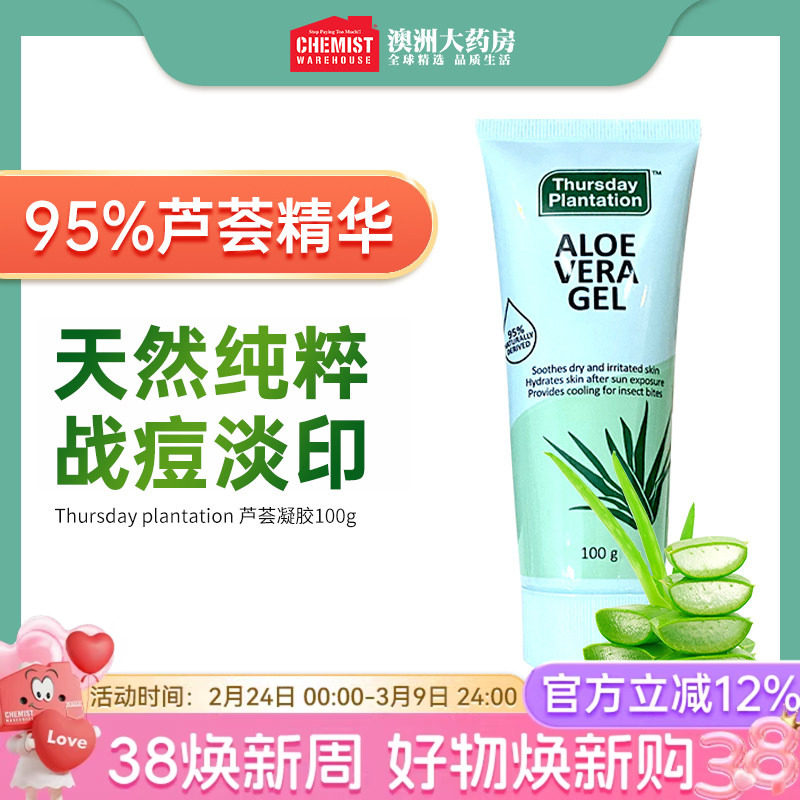 澳洲星期四农庄天然进口芦荟胶祛痘痘印晒后修护补水滋润舒缓100g
