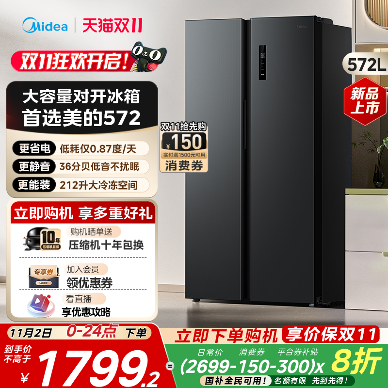 美的606对开双开门大容量冷冻超薄风冷无霜变频家用冰箱以旧换新