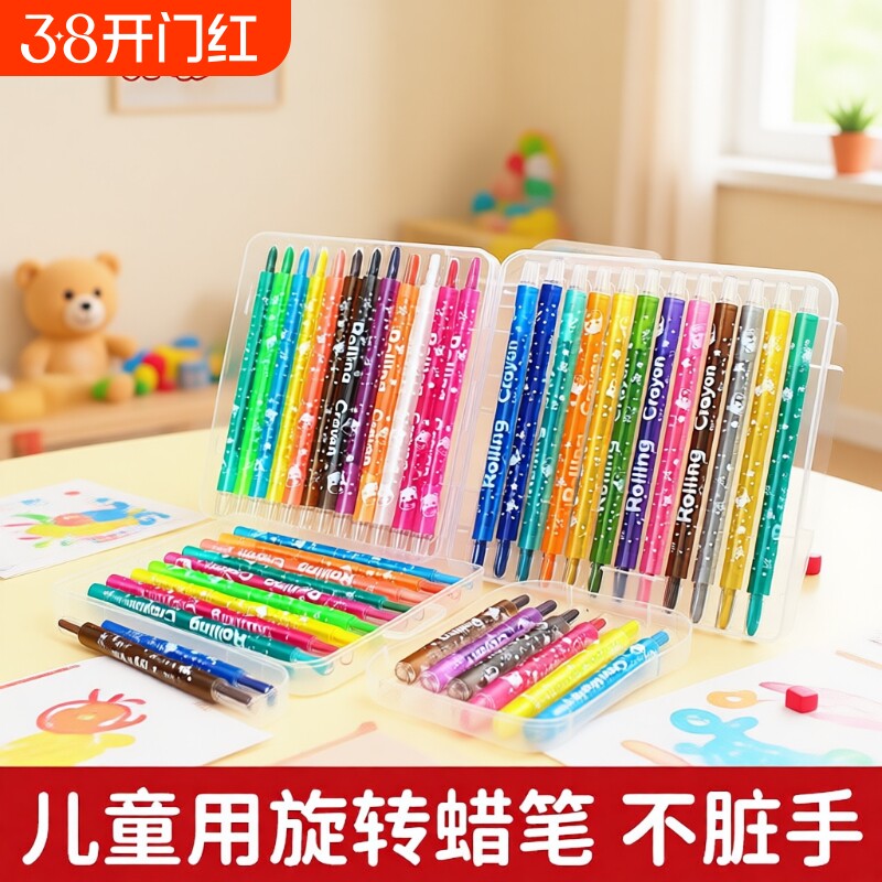 可洗儿童丝滑旋转蜡笔不脏手无毒幼儿园美术专用全套不粘手婴幼儿小学生一年级可水洗画笔12炫彩棒24色油画棒