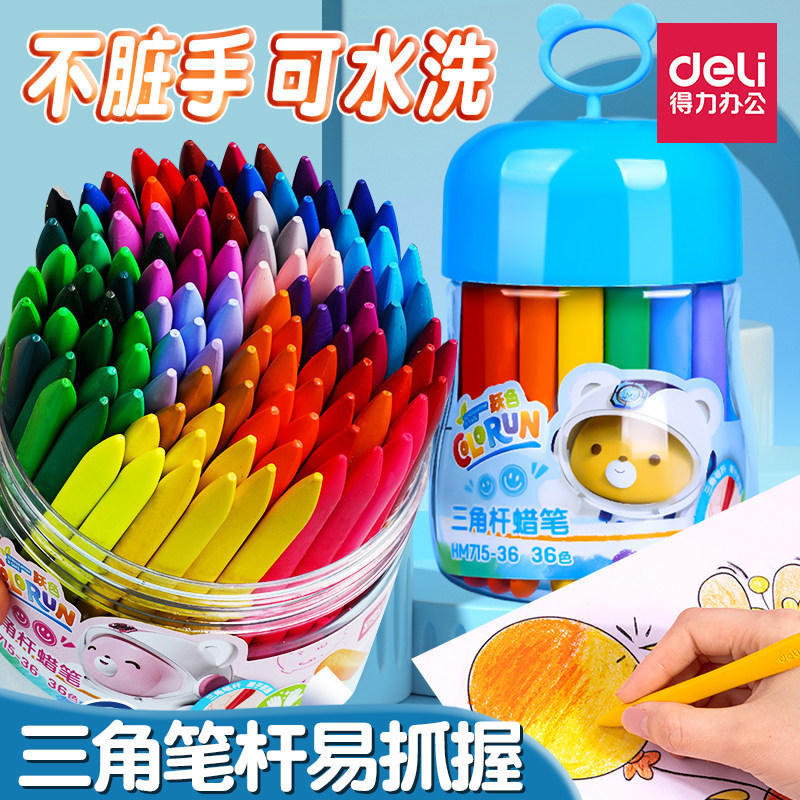 得力蜡笔不脏手儿童安全无毒不沾手画笔幼儿园专用可水洗塑料腊笔宝宝彩笔丝滑彩色画画笔36色油画棒工具套装