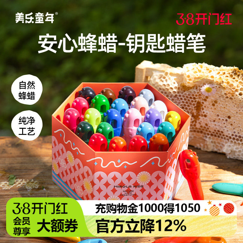 美乐童年儿童蜂蜡钥匙蜡笔不脏手无毒油性幼儿园专用婴幼儿安全可水洗不粘手油画棒画画小蜡笔美术彩色画套装