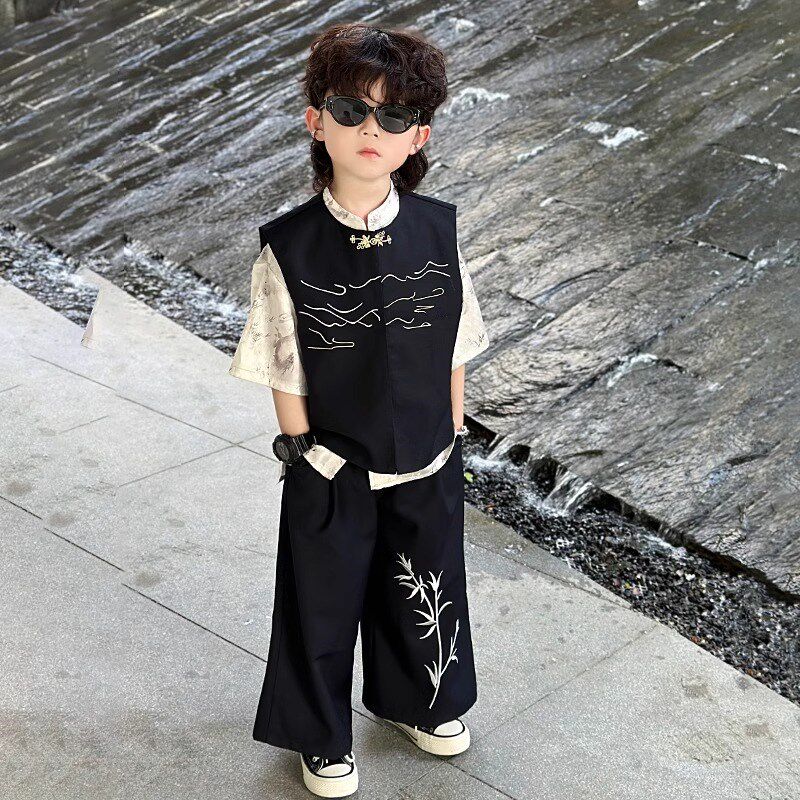 速发新中装男孩中山汉唐装刺绣少儿套装式服古风帅气国风演出服20