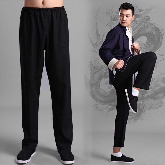 唐装男裤练功中式男士棉麻裤子松紧系带裤中装黑色秋季休闲功夫裤