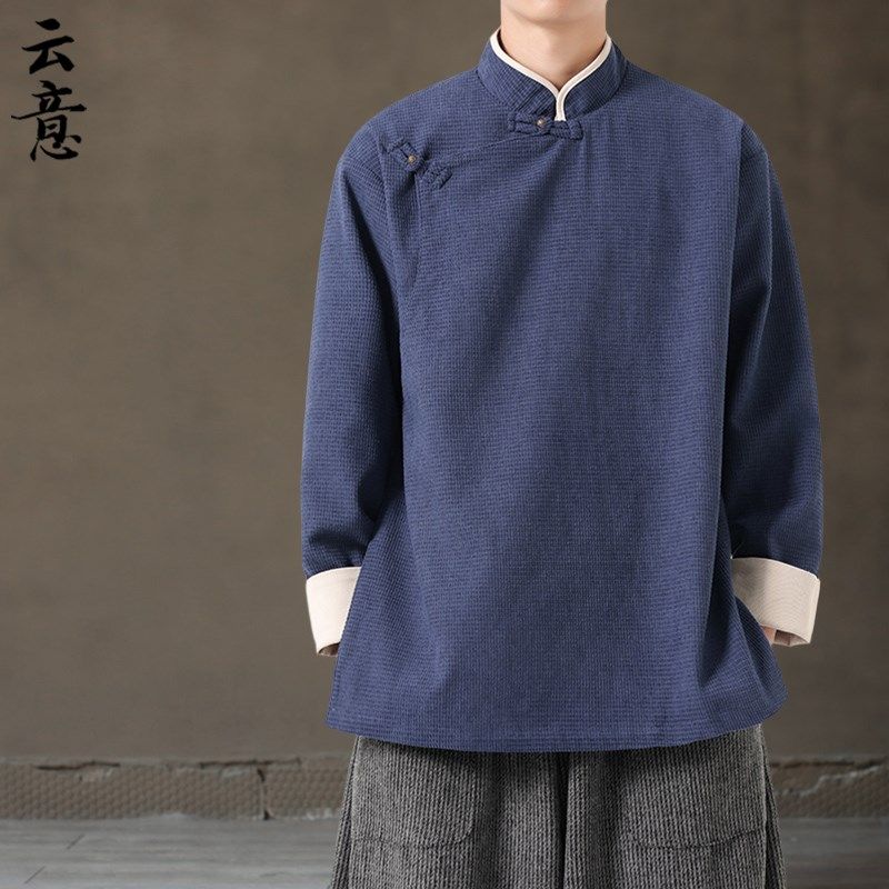 唐装男中装中国风男装春季古风外套棉麻男士复古中式盘扣改良对襟