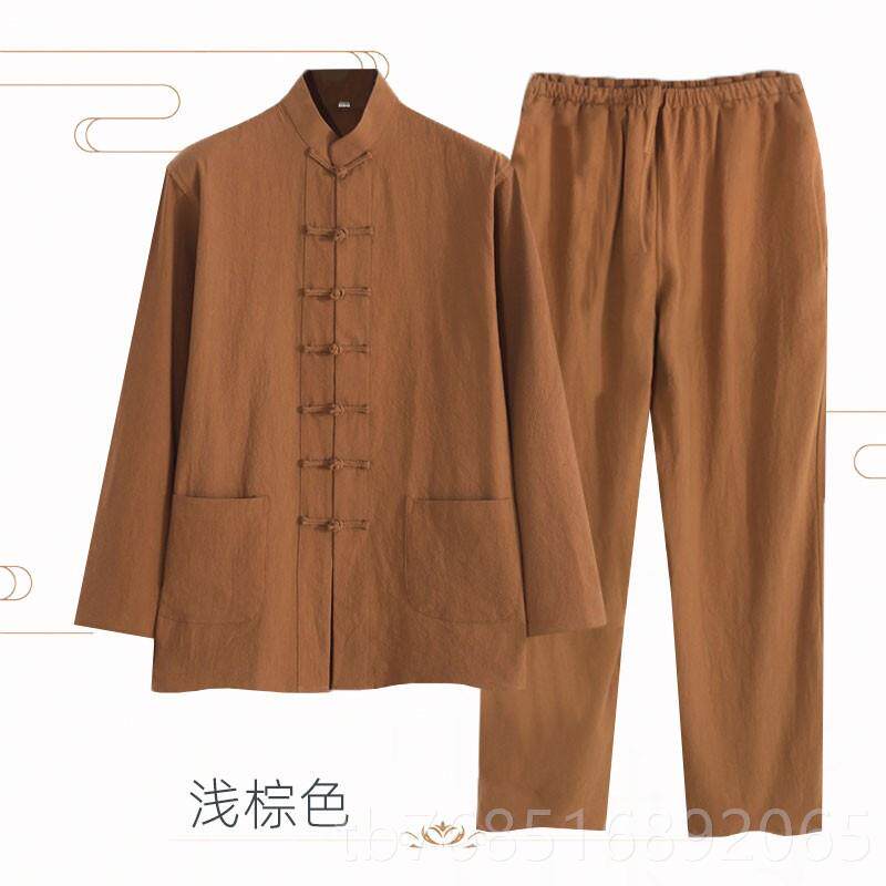 新款秋棉长麻袖中老年唐装男新中春式套装复古盘扣立领中装山居士
