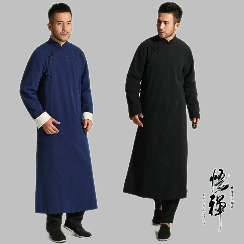 民国长衫男青年唐装长袖外套长款相声大褂全棉汉服中装民族风长袍