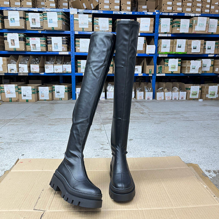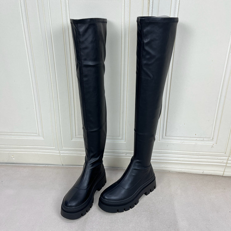 Lady Shoes外贸原单女靴新款时尚圆头厚底粗跟套筒时装长靴过膝靴