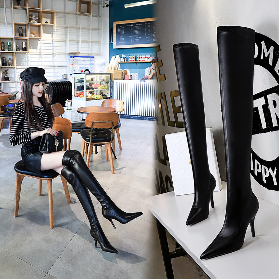 高跟瘦腿弹力袜靴裤靴一体靴细跟尖头女鞋瘦瘦靴大腿靴长靴过膝靴