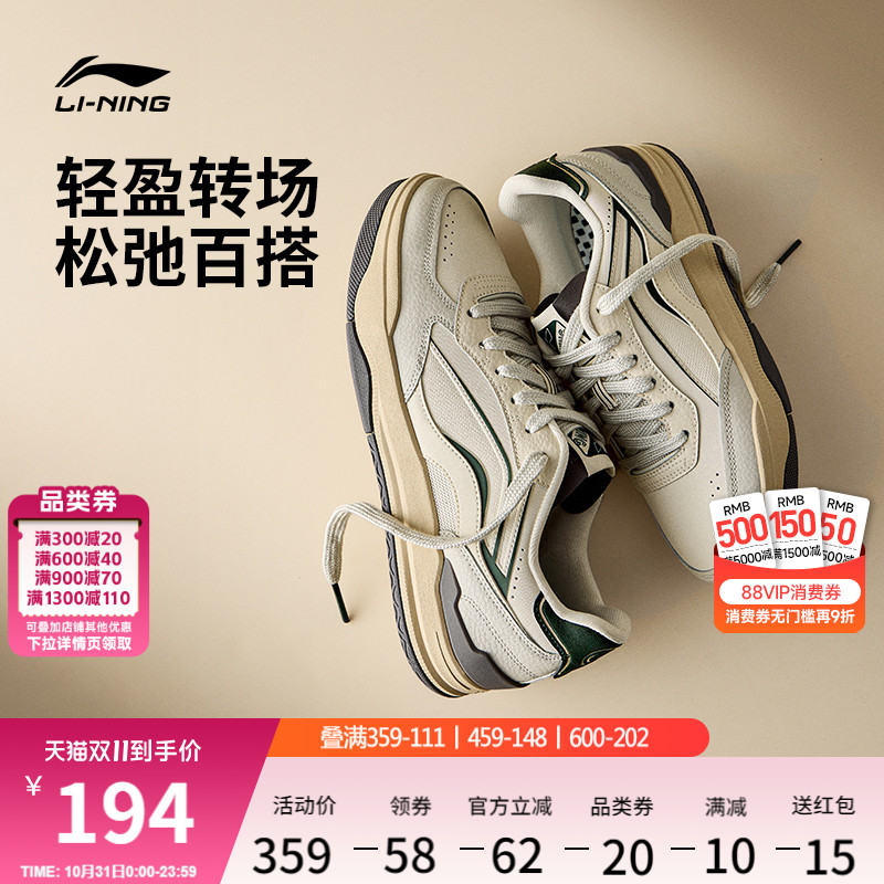 李宁月璃丨板鞋男鞋秋冬新款小白鞋复古休闲鞋轻便女子软底运动鞋