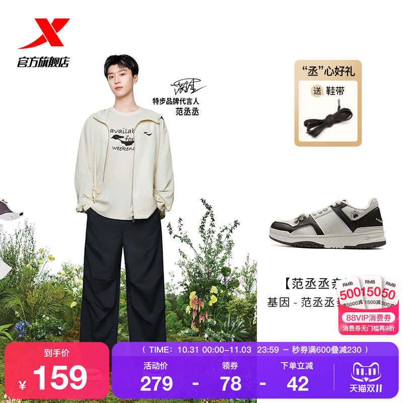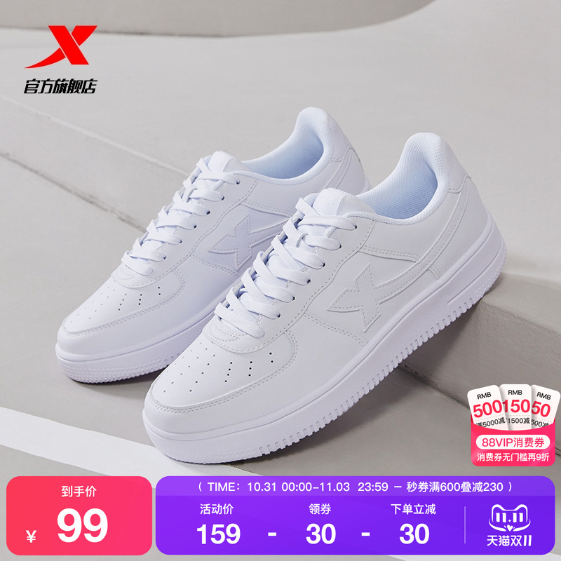 特步空军一号板鞋男鞋秋季休闲鞋情侣运动鞋女鞋子百搭厚底小白鞋