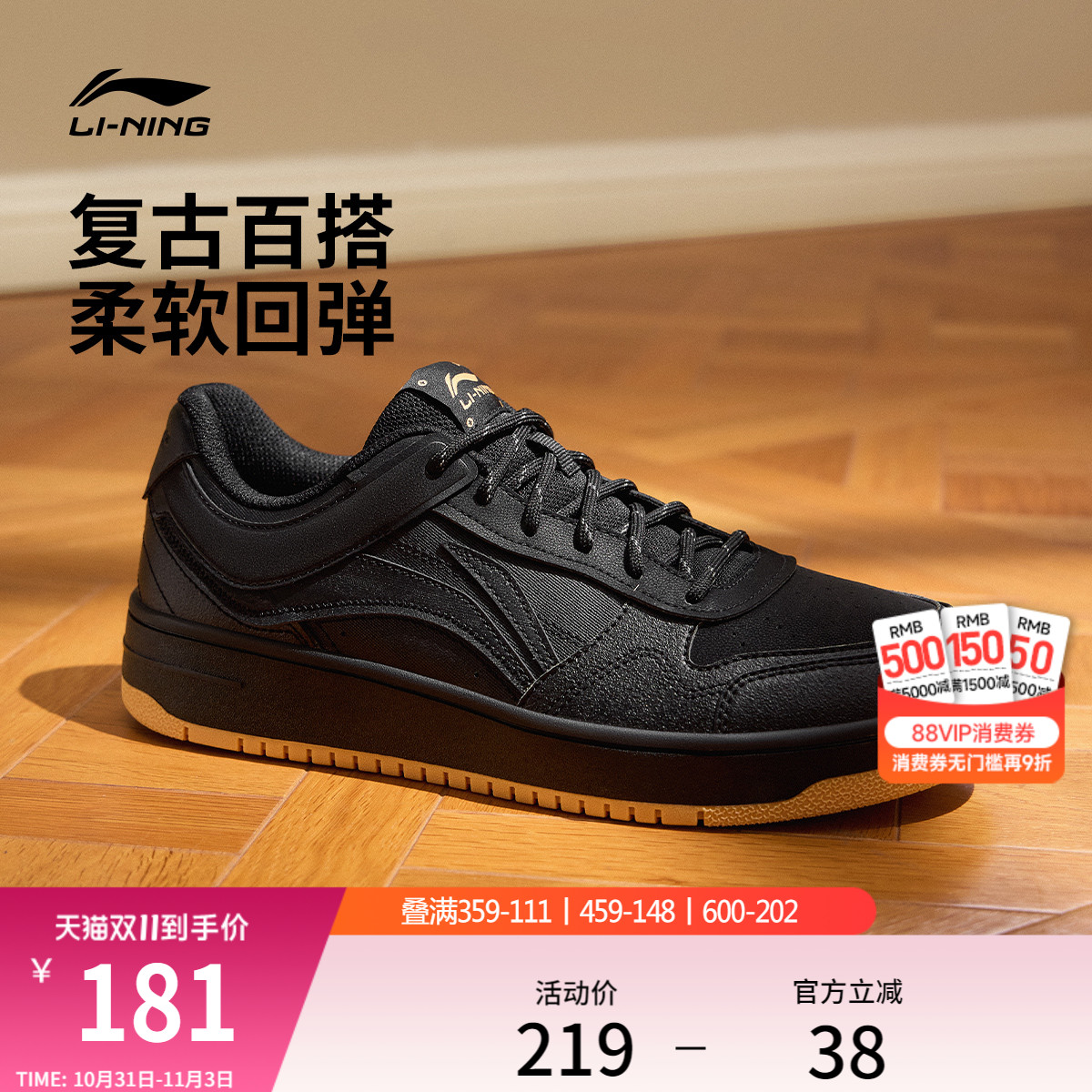 李宁天迹 |黑色板鞋男鞋秋冬新款复古舒适百搭平底鞋休闲鞋运动鞋