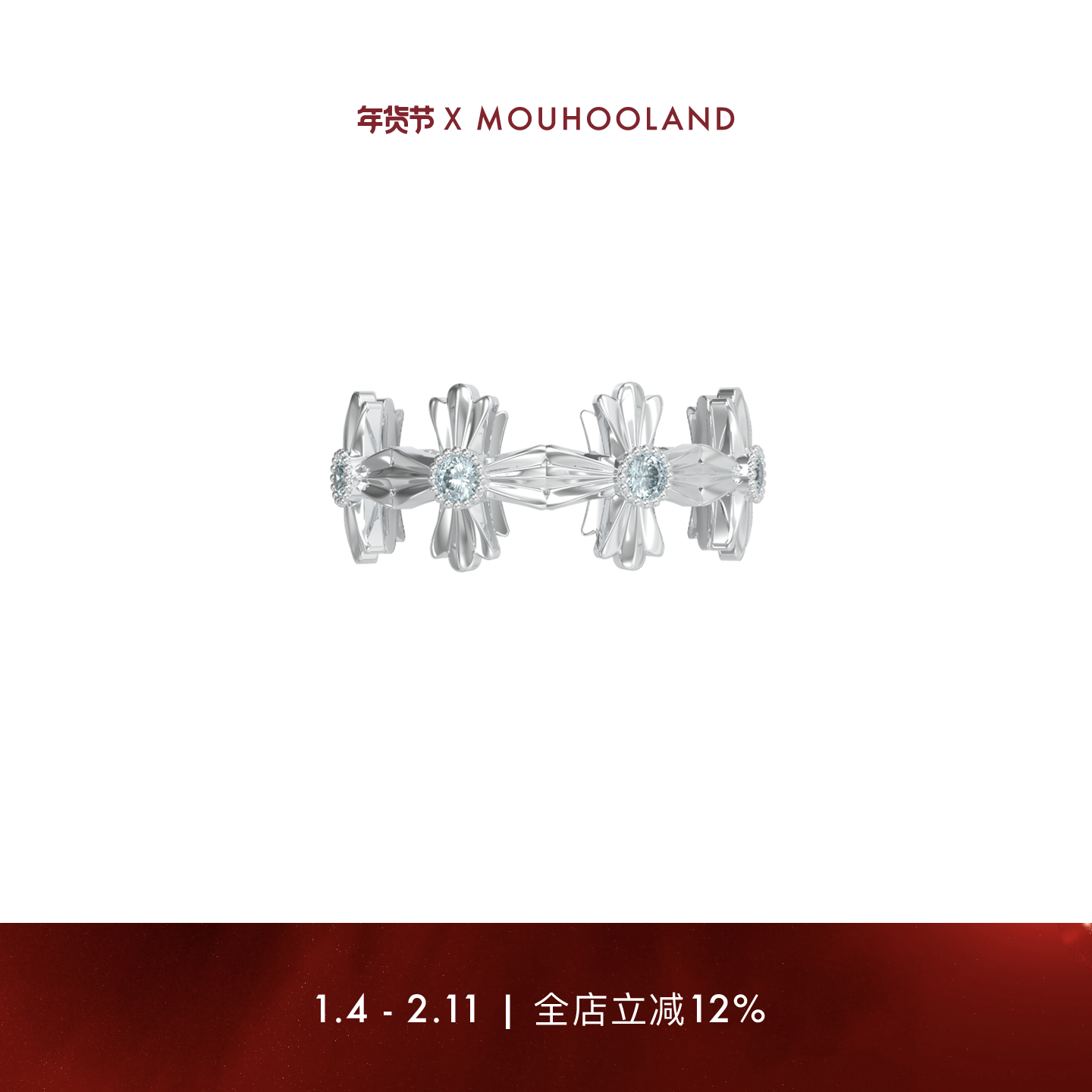 Mouhooland暮后之地新品繁花戒指925银情侣对戒原创设计小众高级