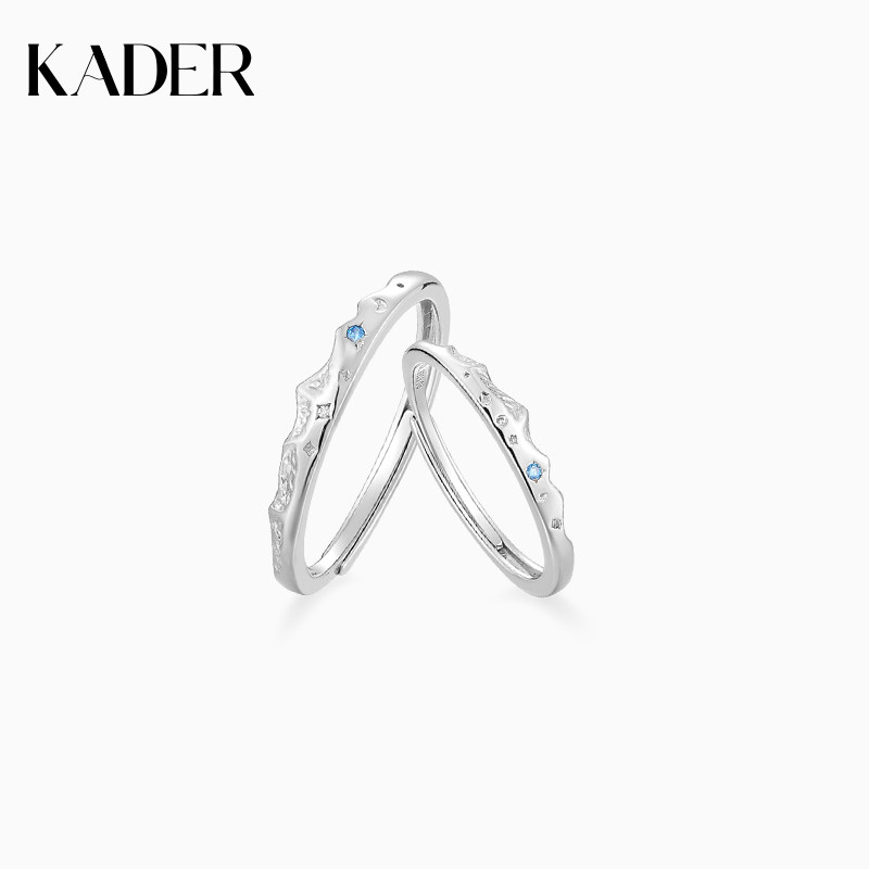 KOOKISS蔚蓝之心原创925银情侣对戒小众设计冷淡风戒指情人节礼物