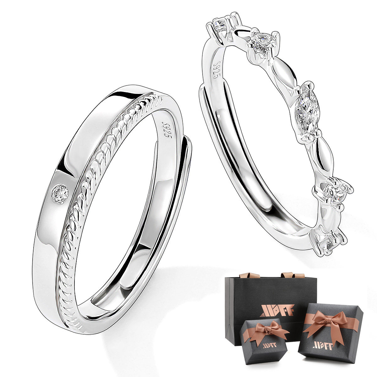 XXOFF倾世之恋 闪钻花环纽纹戒圈一款两式甜蜜恋人925银情侣对戒