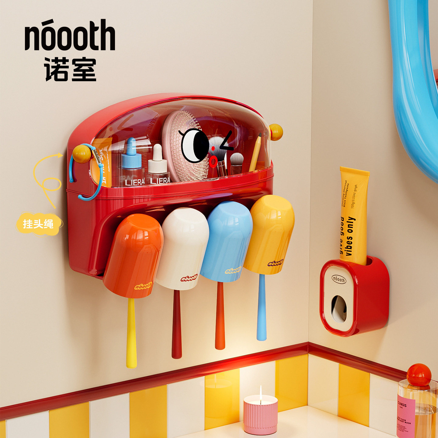 诺室防尘牙刷置物架壁挂式免打孔牙膏电动刷牙杯牙缸洗漱口杯套装
