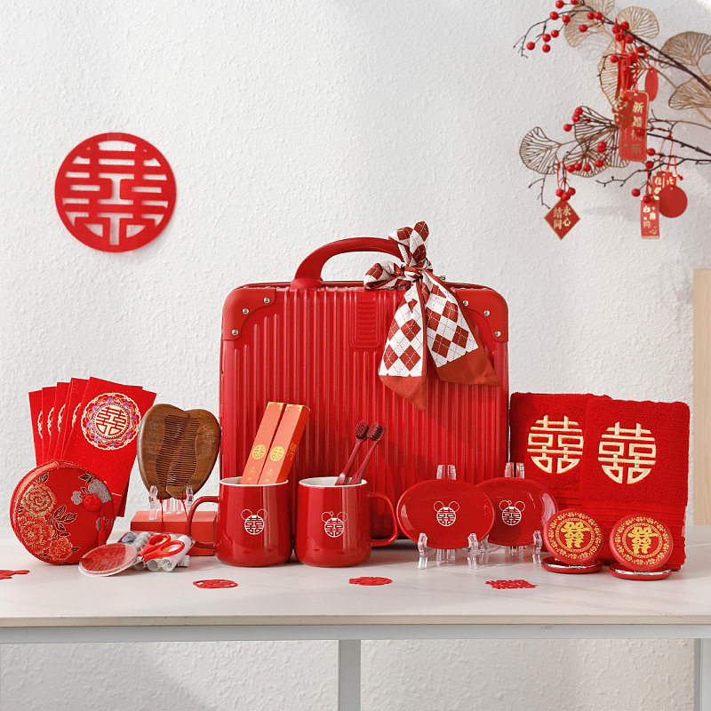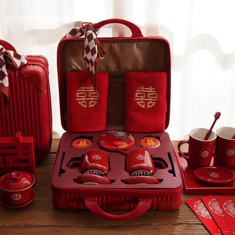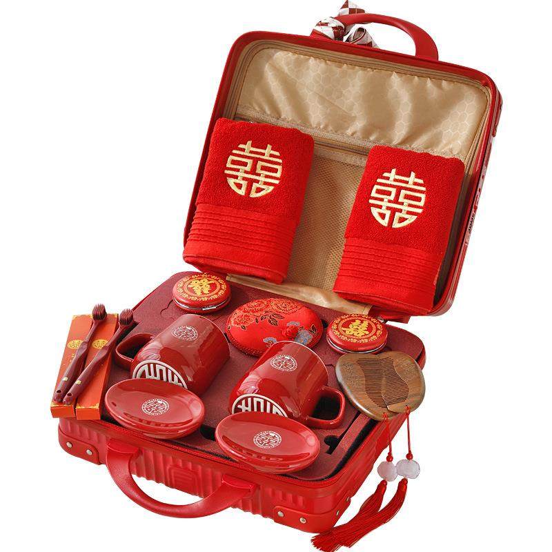 新款直销结婚用品大全女方陪嫁行李箱婚庆洗漱口杯套装娘家新娘嫁