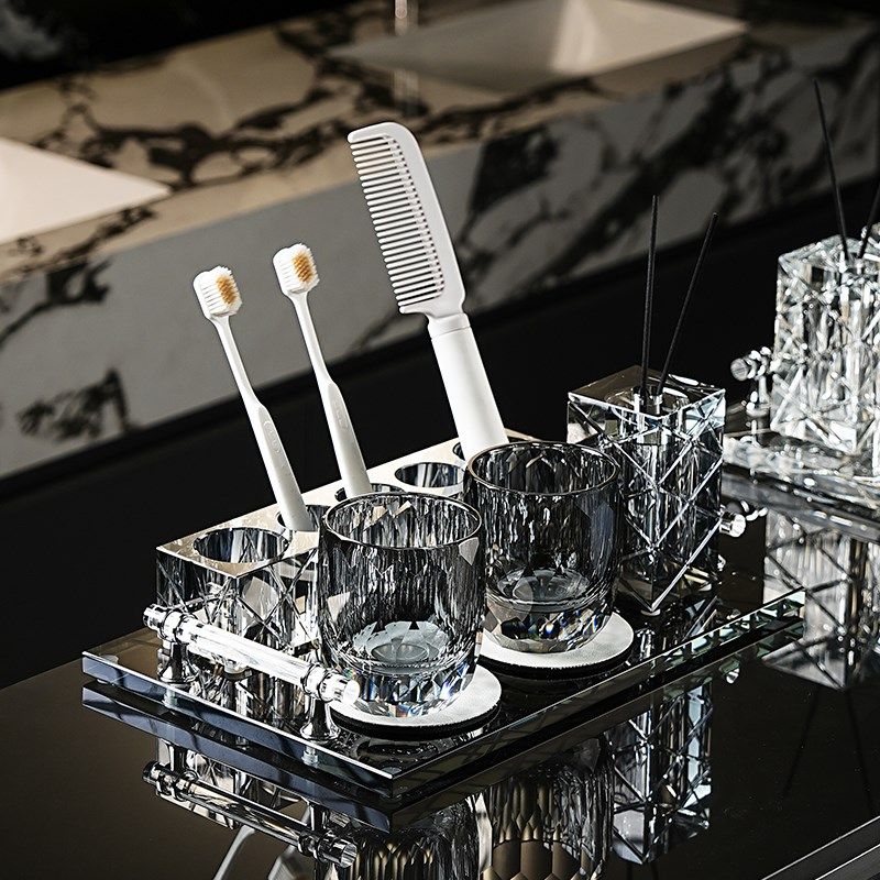 意式奢华水晶电动牙刷置物架别墅卫生间台面收纳托盘洗漱口杯套装