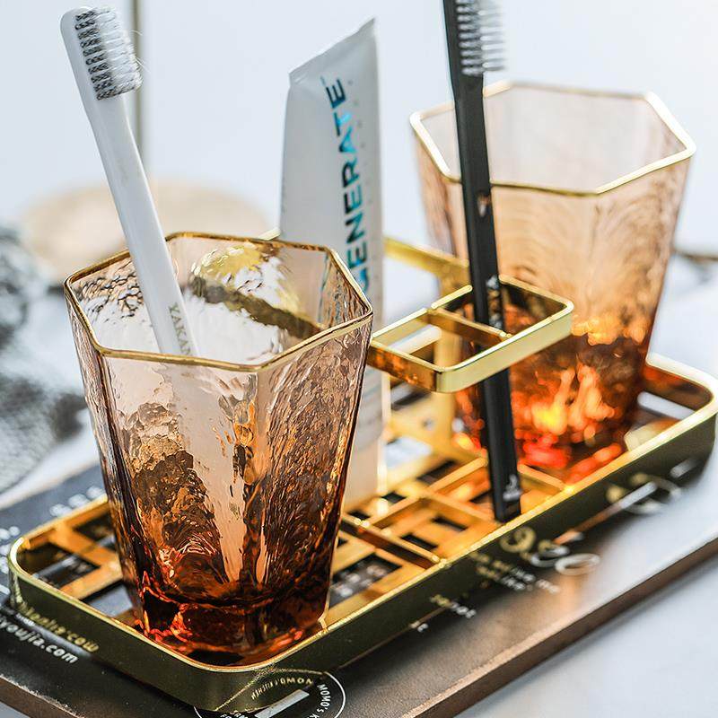 轻奢家用ins情侣洗漱口杯套装置物架玻璃刷牙杯一对北欧牙缸壁挂