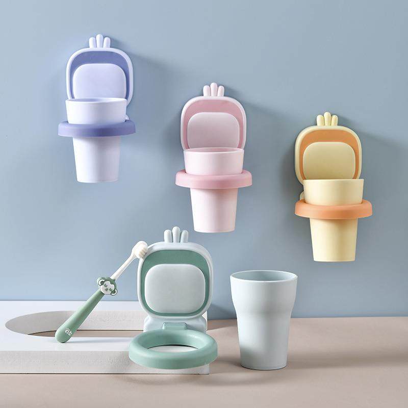 儿童创意刷牙杯架洗漱口杯套装免打孔壁挂式防摔家用牙刷杯置物架