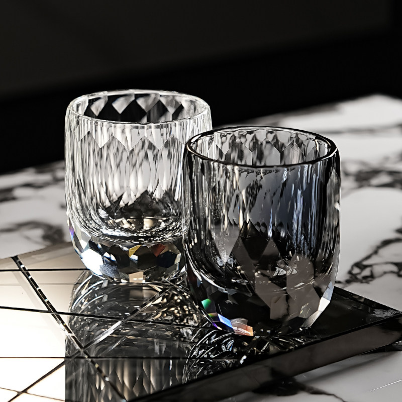 奢华高档水晶玻璃杯家用双人洗漱口杯套装洋酒杯手工刻花喝水杯子