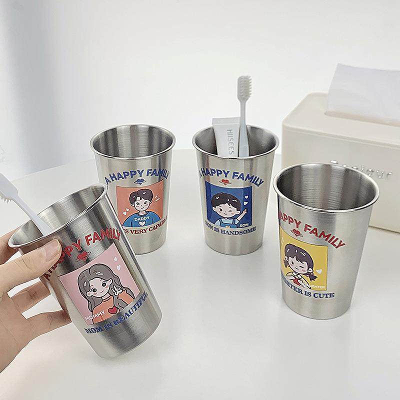日式304不锈钢洗漱口杯儿童刷牙杯子ins风套装一家三四口简约可爱