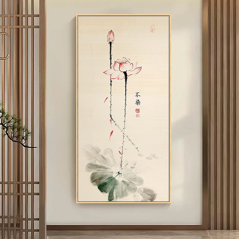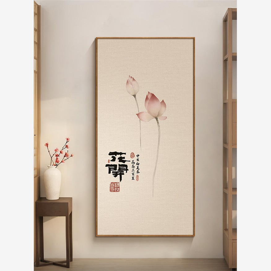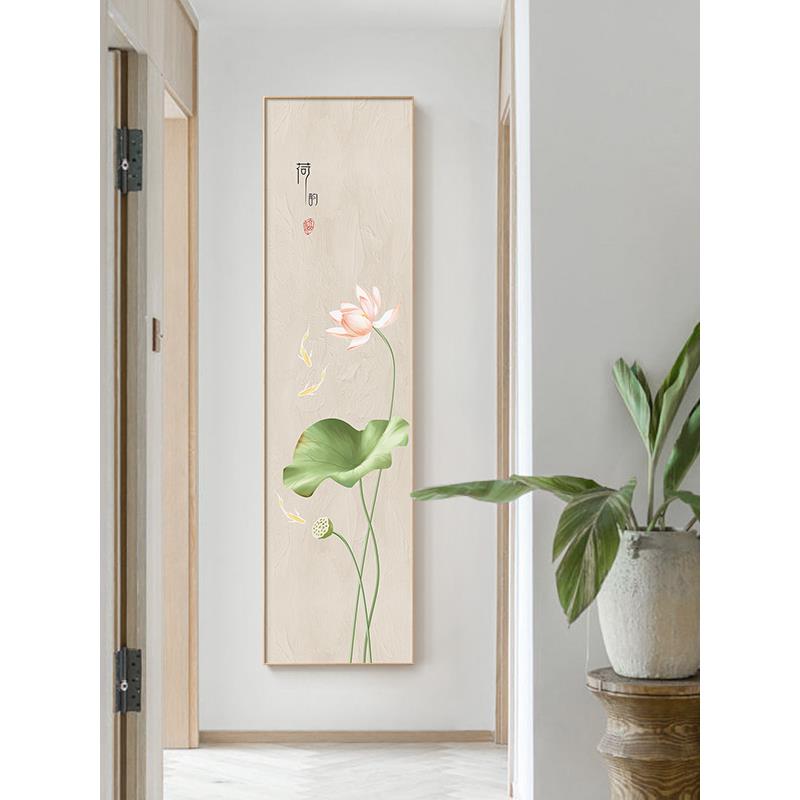 荷花玄关装饰画新中式走廊过道尽头竖幅艺术挂画茶室水墨禅意壁画