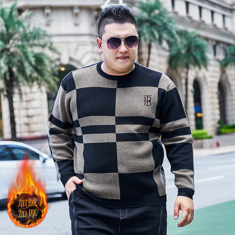 毕蒙特大码套头针织衫加绒加厚宽松休闲毛衣胖子线衣肥佬男士秋冬