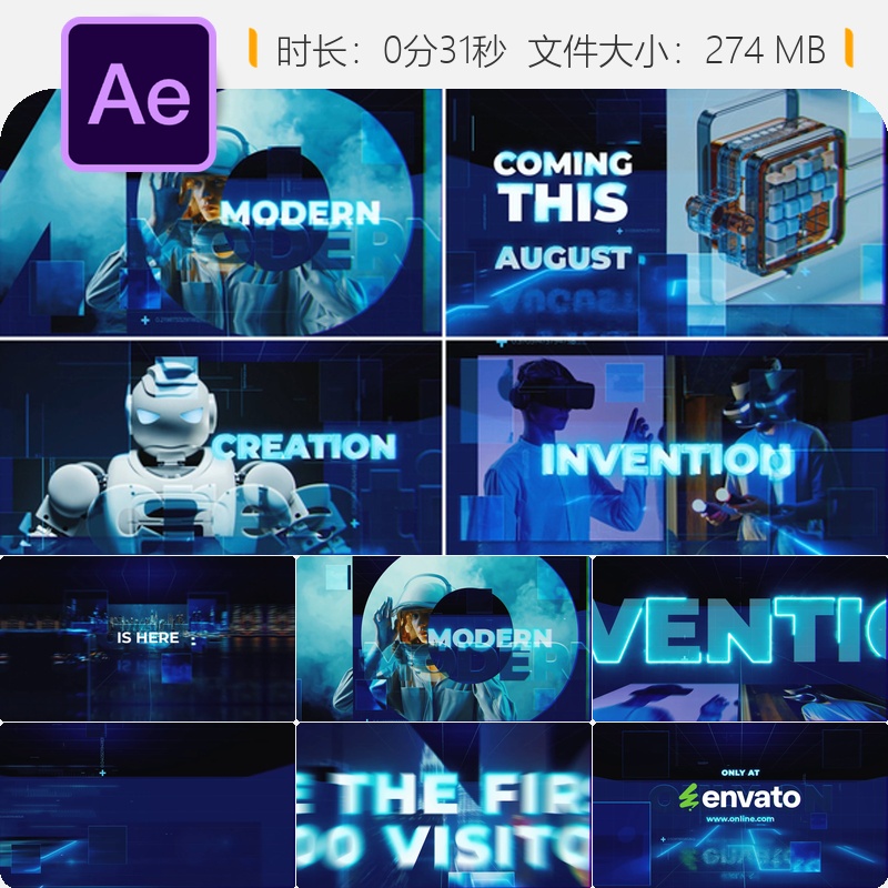 未来科技感AE模板3D动态开场企业宣传片视频制作橙色光效技术