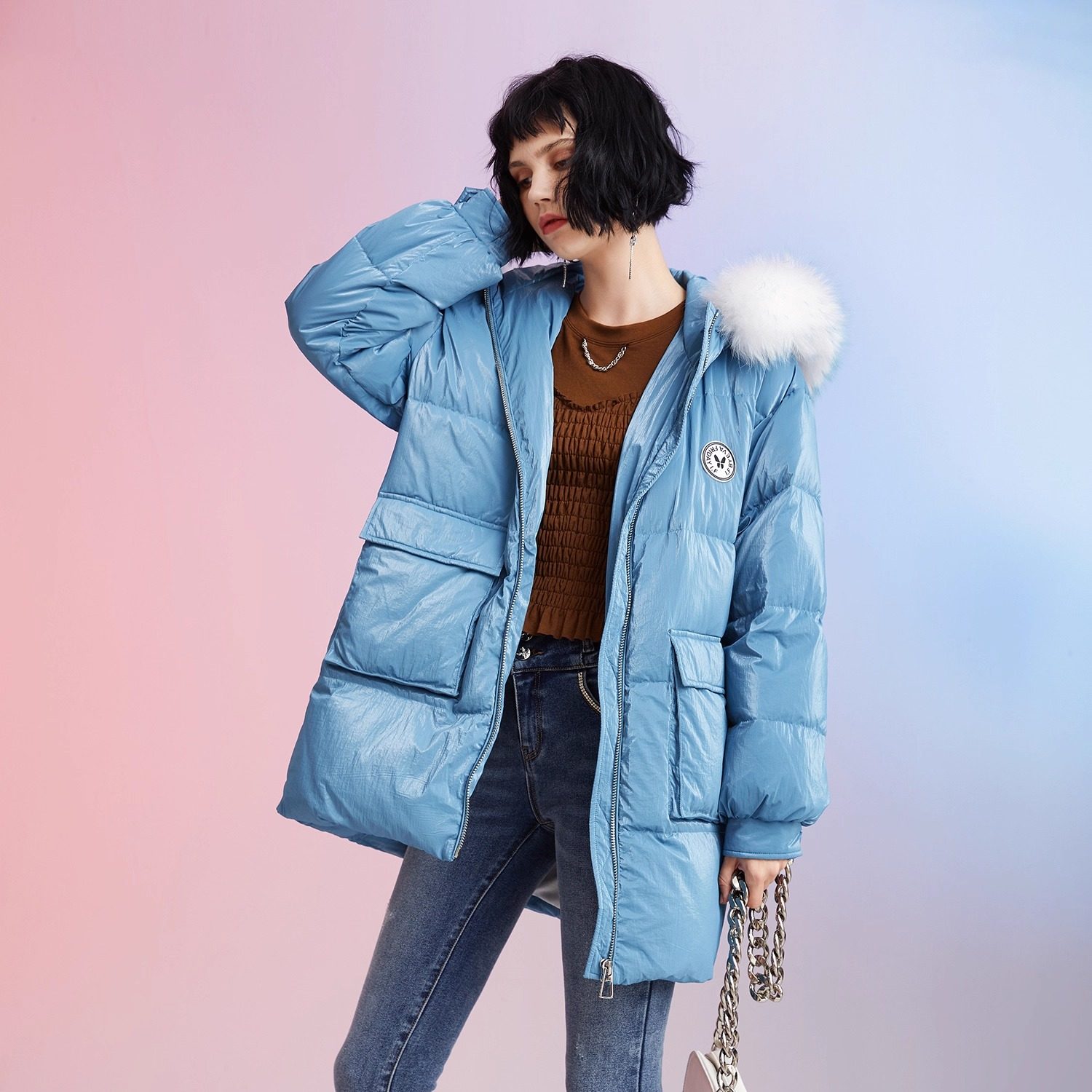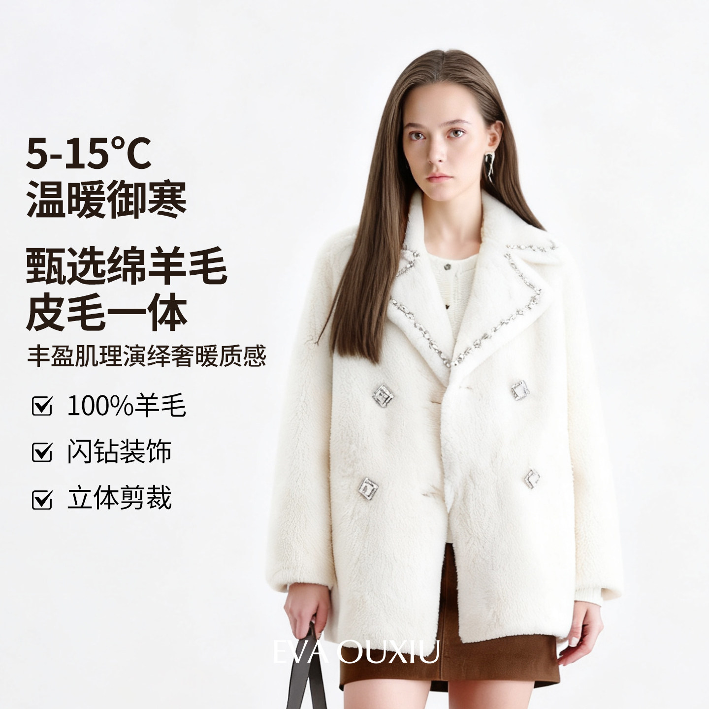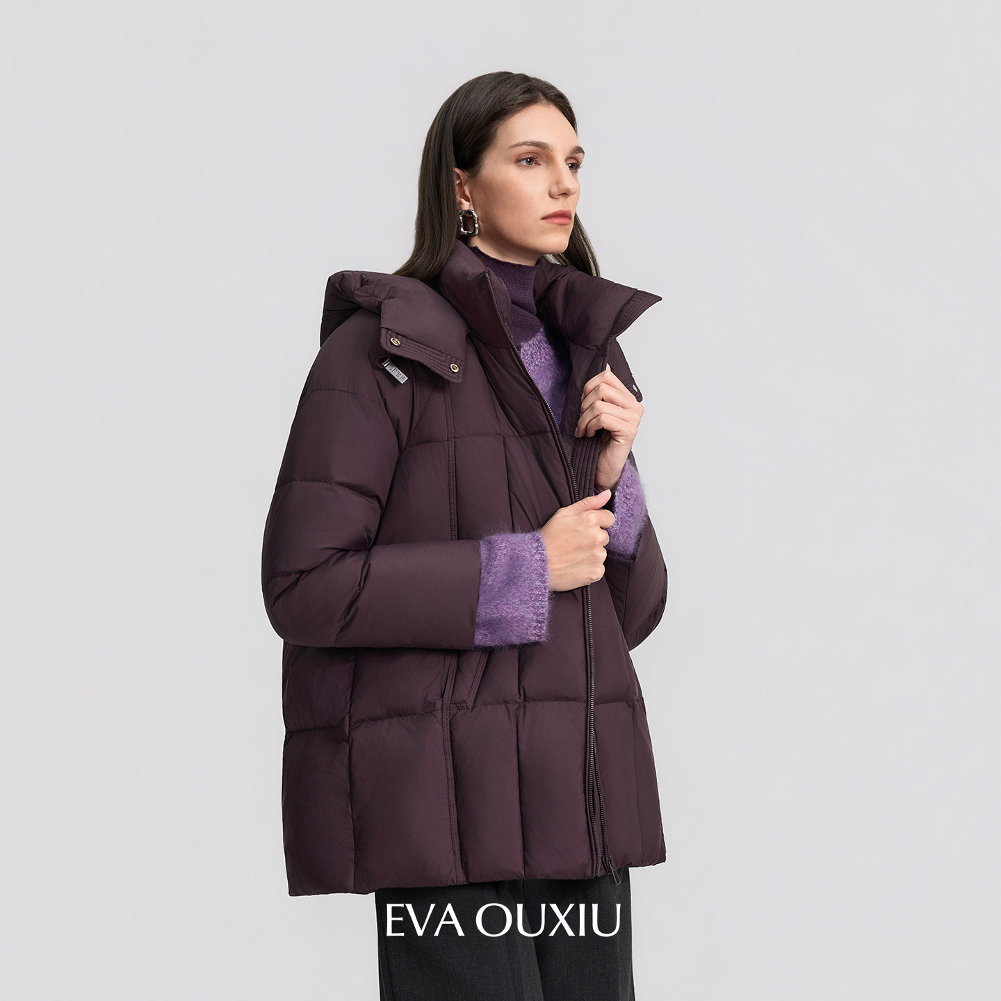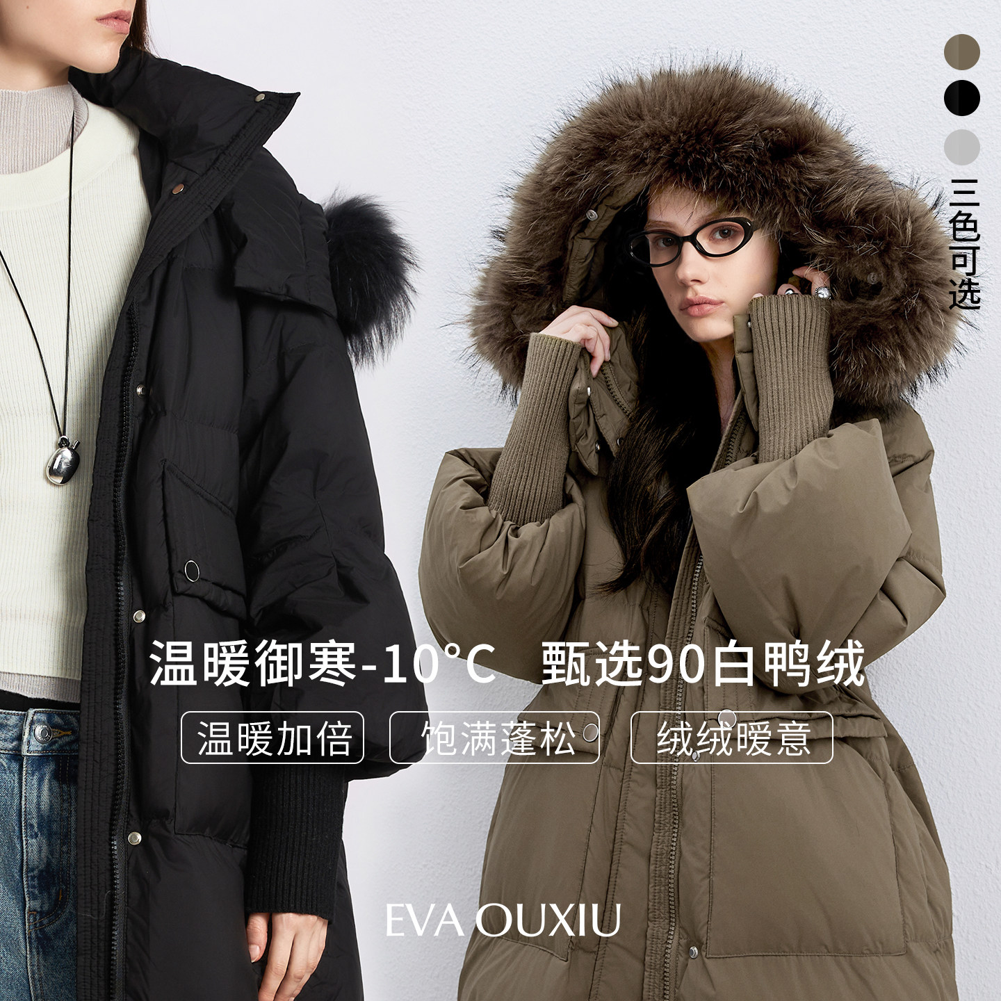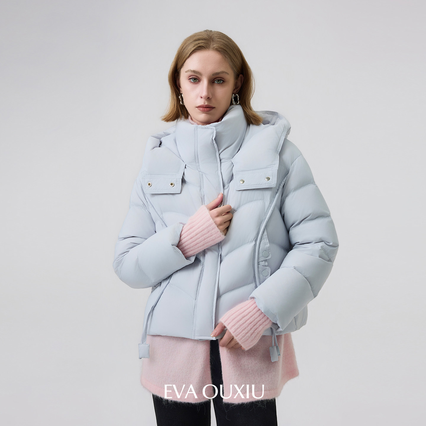 EVAOUXIU冬季新款女人味小廓形奢华气质优雅羽绒服舒适轻薄保暖
