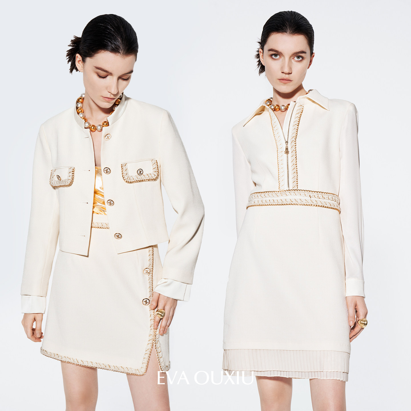 EVAOUXIU春新款轻奢高端小香风西装外套高腰显瘦连衣裙A字裙半裙