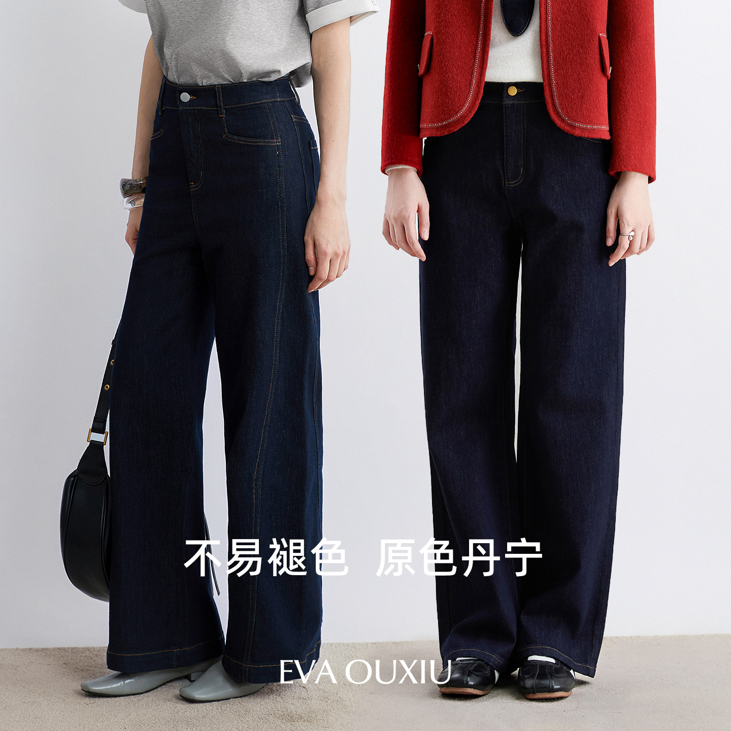 EVAOUXIU【新品】高腰复古不易褪色原色牛仔裤女25秋通勤直筒长裤