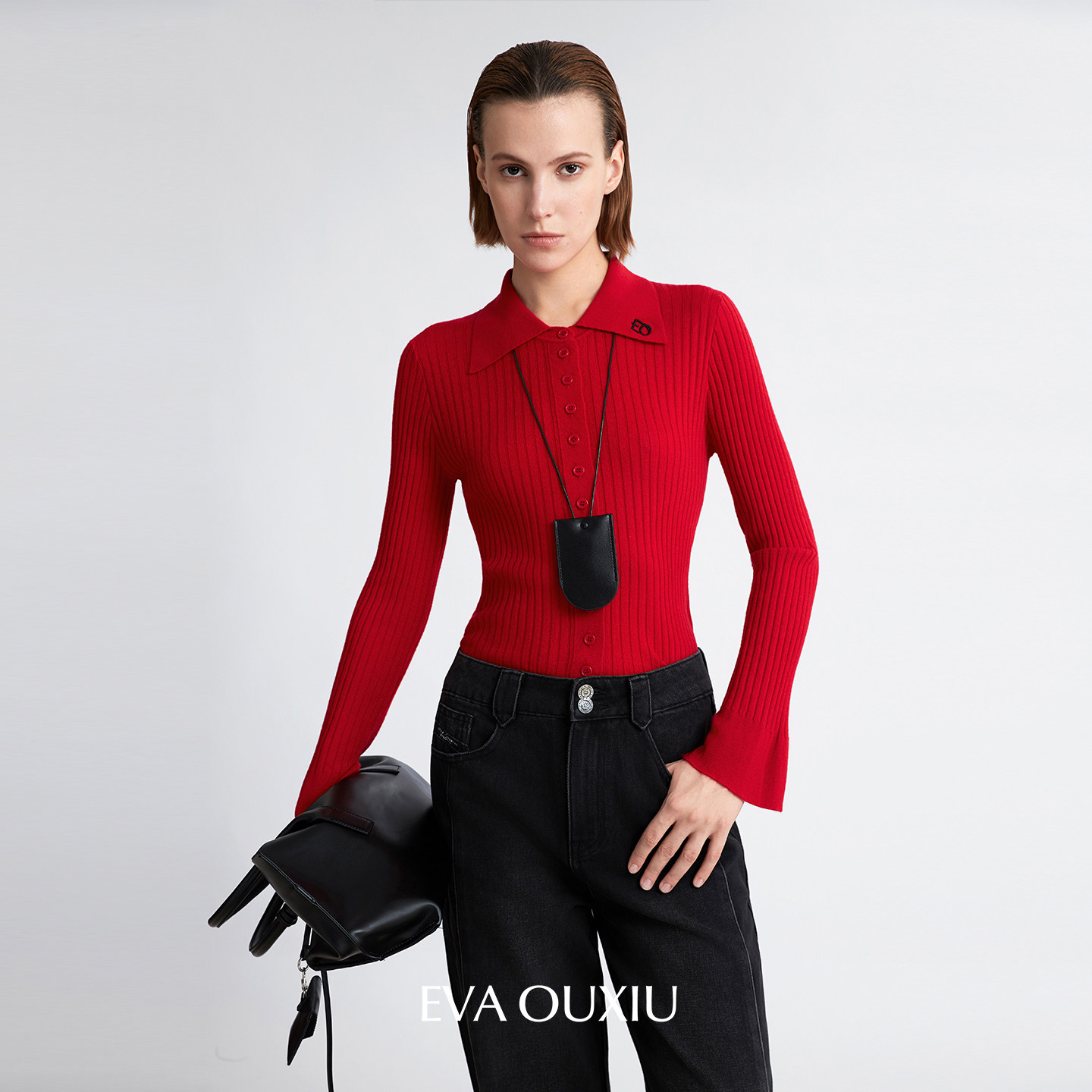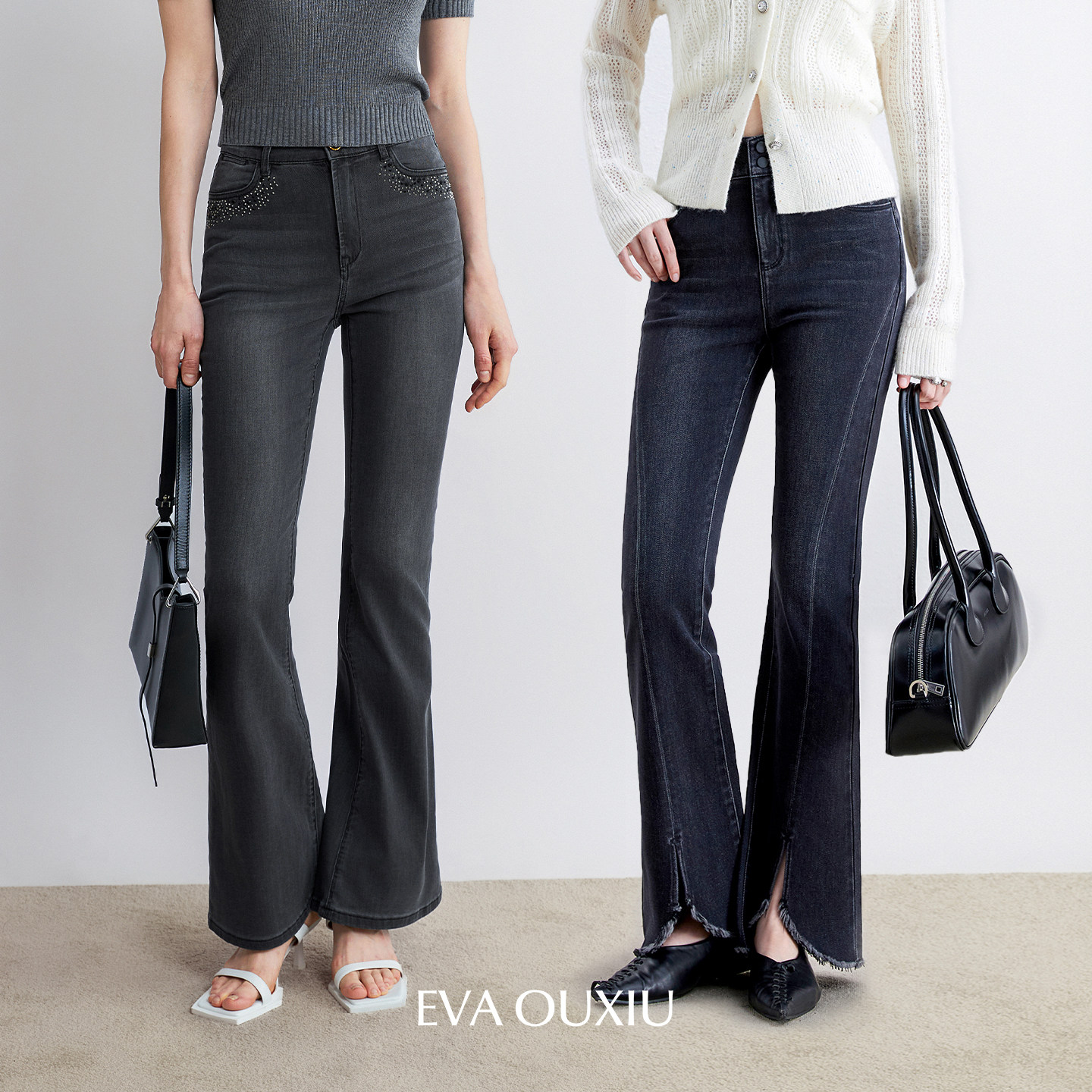 EVAOUXIU开衩喇叭牛仔裤2025年秋季新四面弹显瘦长裤