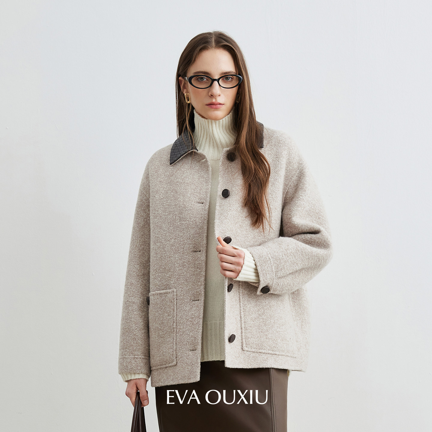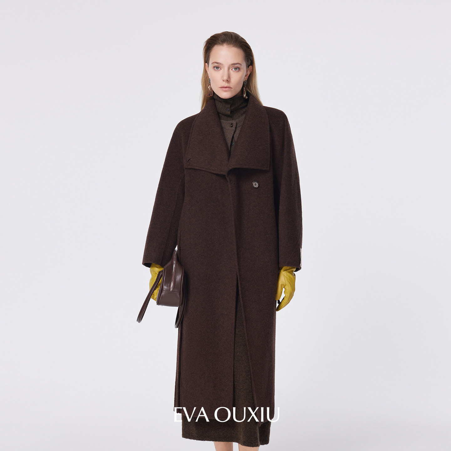 EVAOUXIU高智感通勤毛呢大衣气质时髦中长款廓形加厚外套女25秋冬
