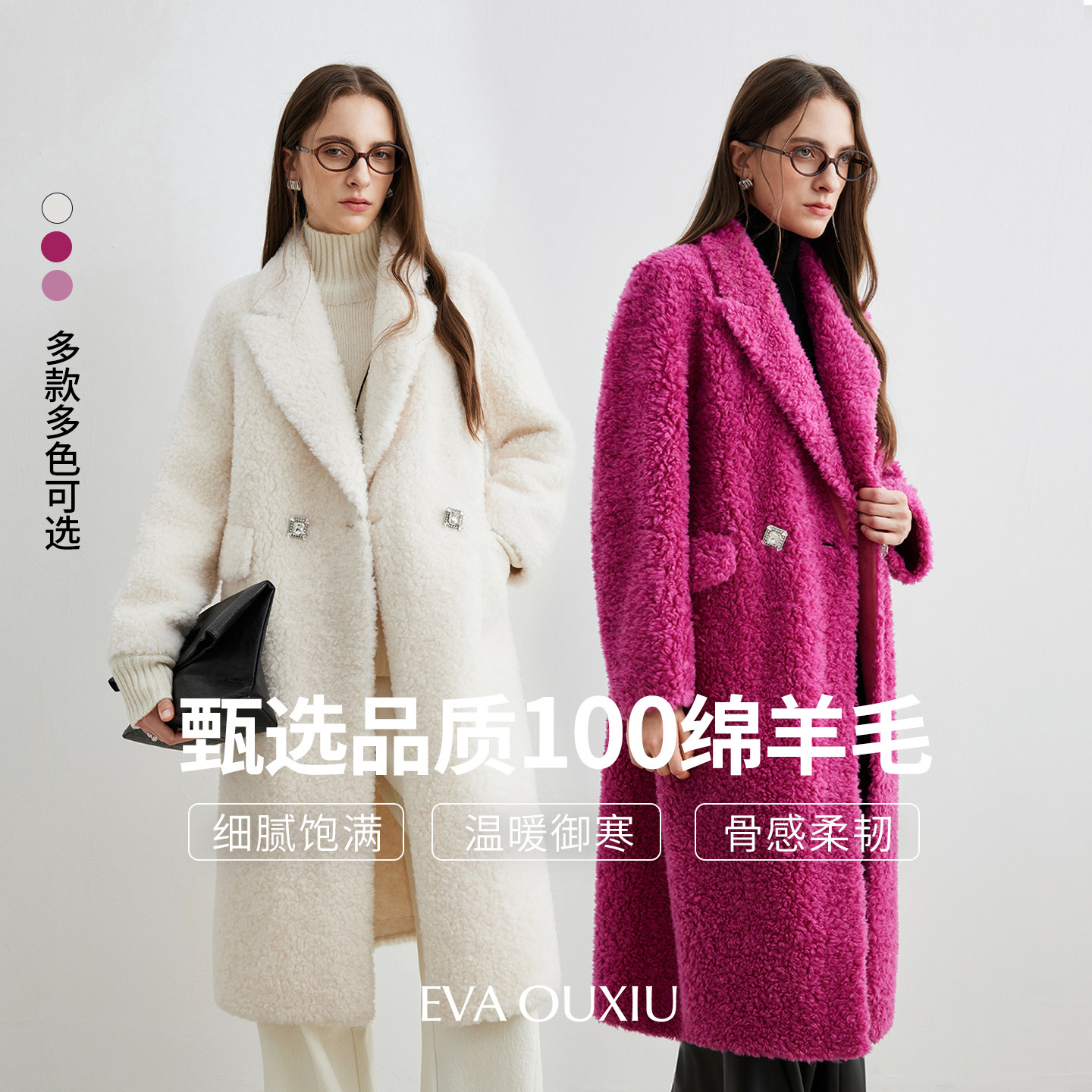 EVAOUXIU气质高级感羊毛大衣女粉色千金风加厚保暖年轻款毛毛外套