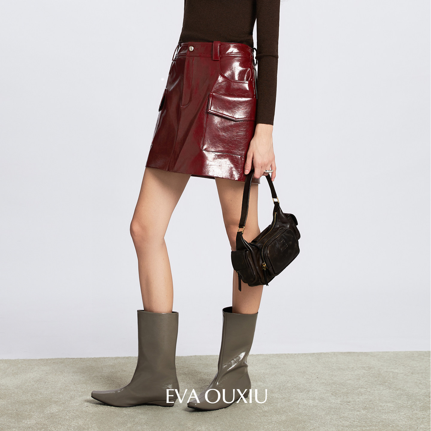 EVAOUXIU摩登时髦通勤A字复古红色短裙25秋季新款简约百搭半身裙