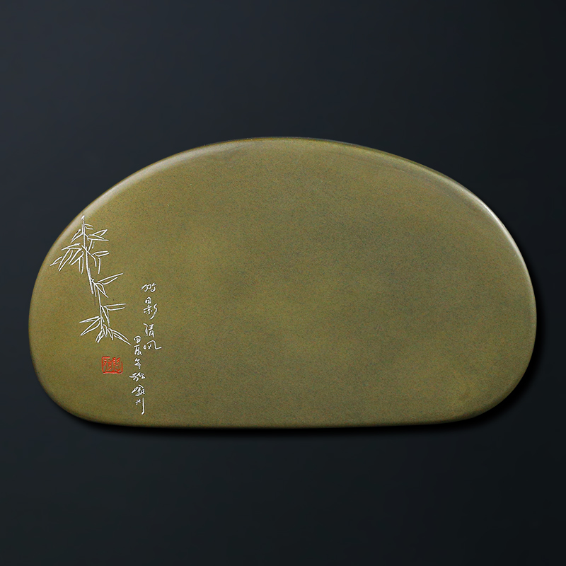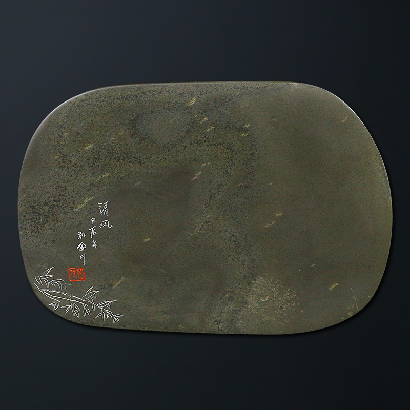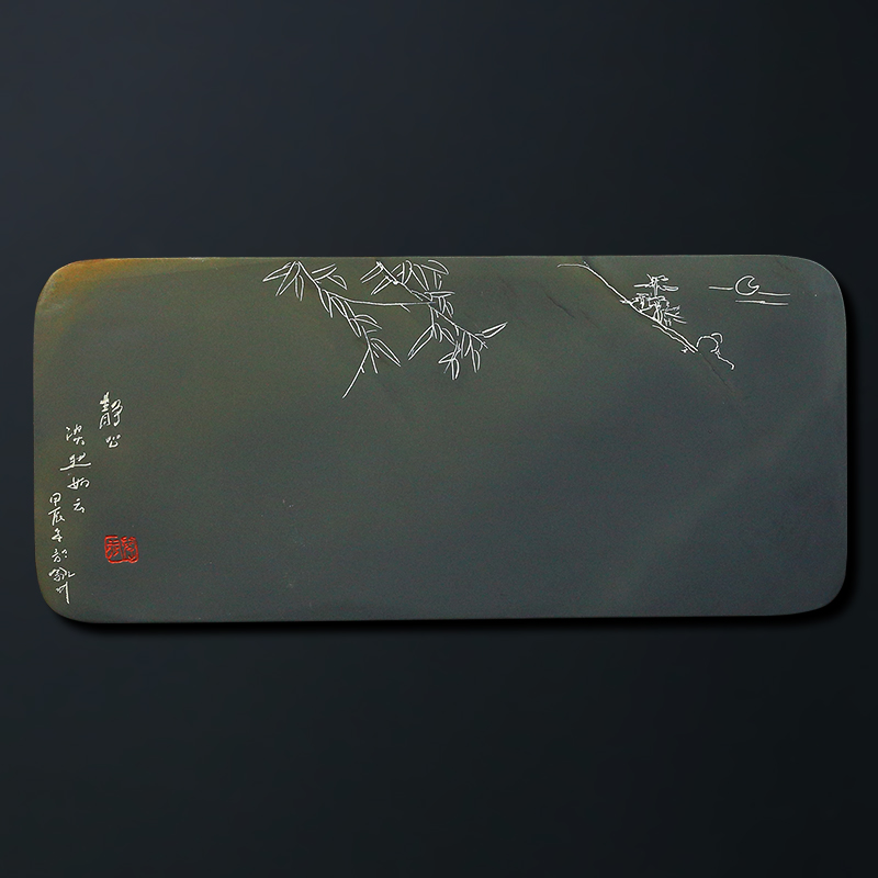 【孤品 一物一拍】 国家非遗传人 方学斌砚台《竹影清风》高档天然济源原石砚台 歙砚茶盘文房四宝 YT6096