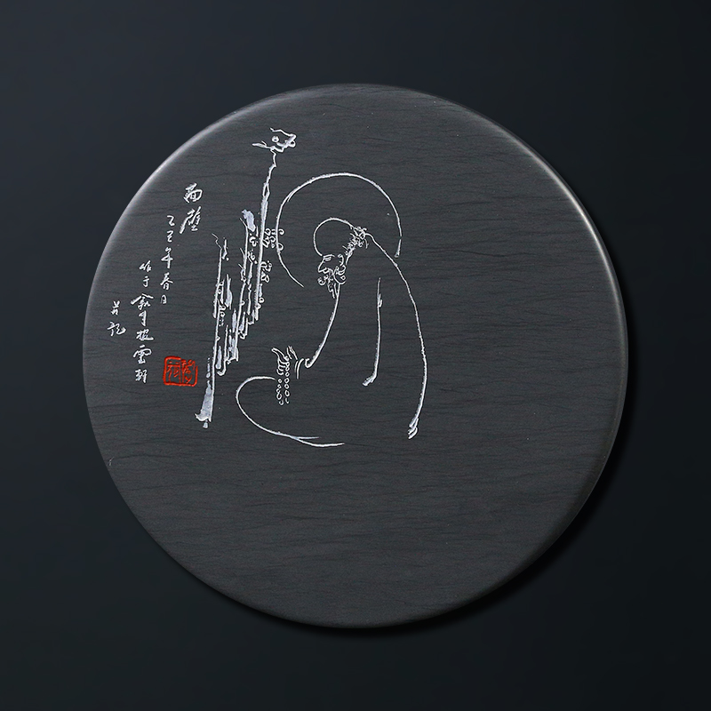 【孤品 一物一拍】国家非遗传人 方学斌《佛》高档天然济源坑原石砚台 歙砚茶盘文房四宝 YT6138