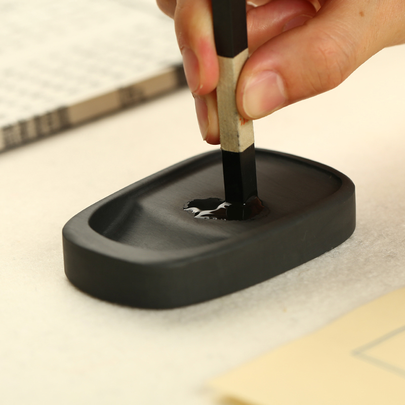 六品堂火锅砚台书法专用多功能天然原石带盖防蒸发不干墨初学者练毛笔字可磨墨研墨条歙砚墨池墨汁保湿墨盒