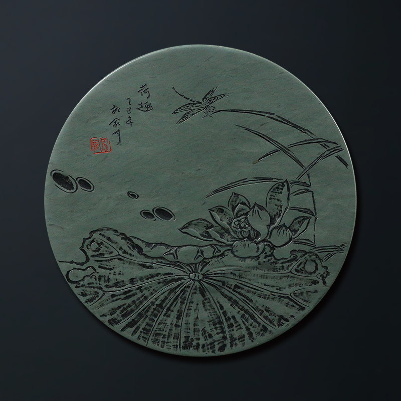 【孤品 一物一拍】国家非遗传人 方学斌《荷趣》高档天然济源坑原石砚台 歙砚茶盘文房四宝 YT6137