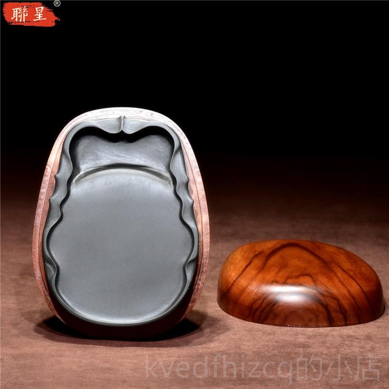 掌中宝原石砚台初学入门学生随身歙砚书法书画天然石头墨池墨碟文房四宝礼品笔墨纸砚带盖木盖砚台