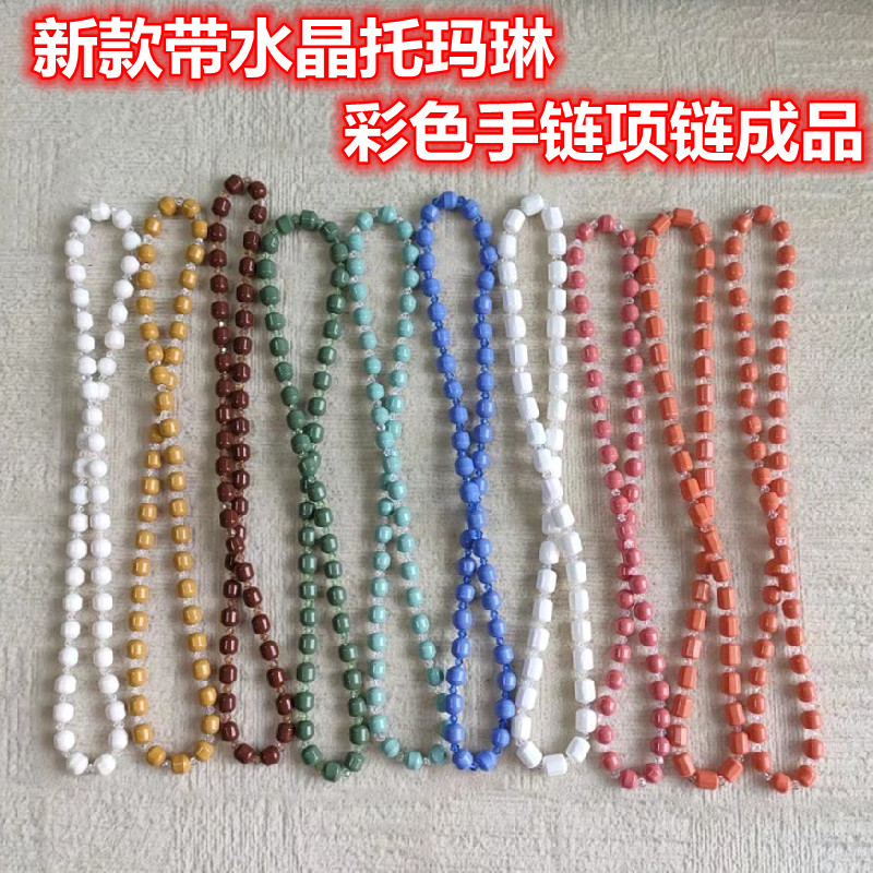 韩国新款托尔玛琳能量石颈椎项链麦饭石彩色负离子颈部防护锗石链