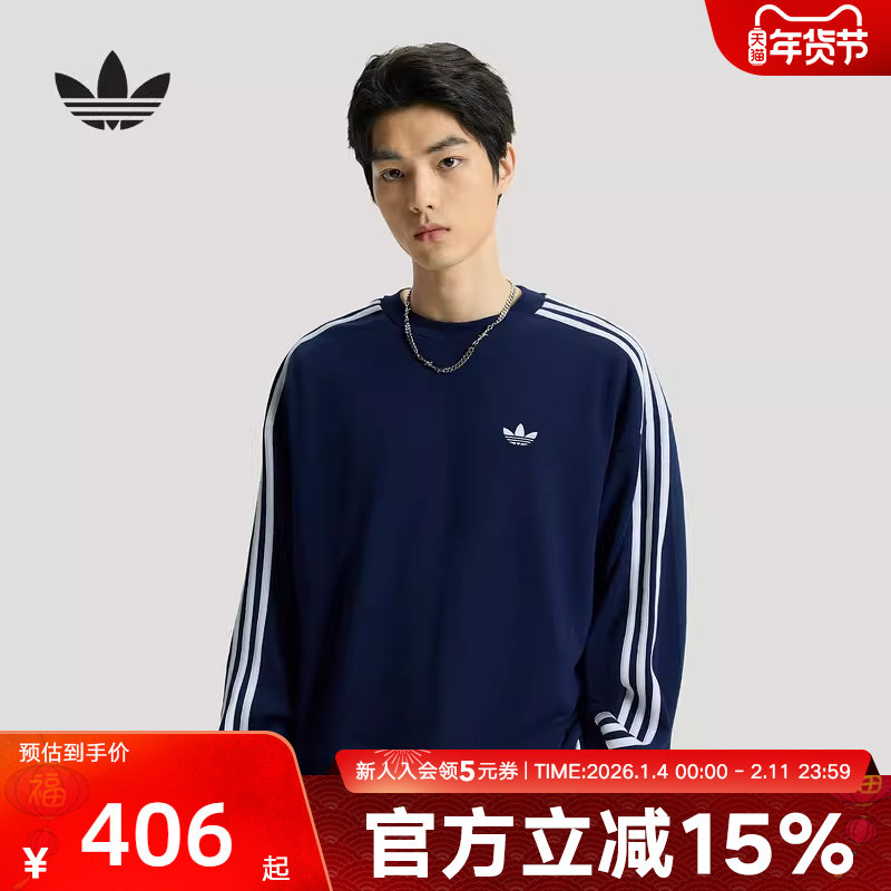 休闲舒适三条纹毛圈布圆领套头卫衣男装adidas阿迪达斯轻运动