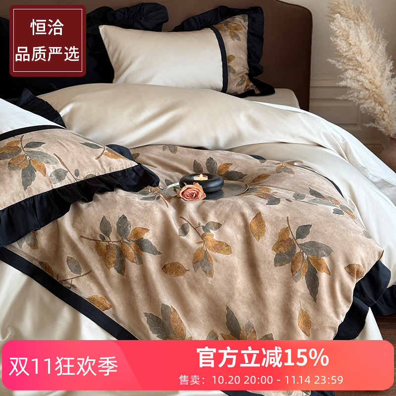 无印良品高奢丨新款宋锦缎磨毛四件套保暖床单被套床笠款床上用品