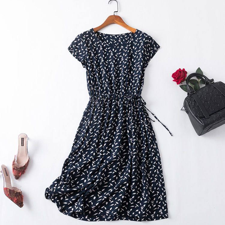 - 波点连衣裙雪纺中长款